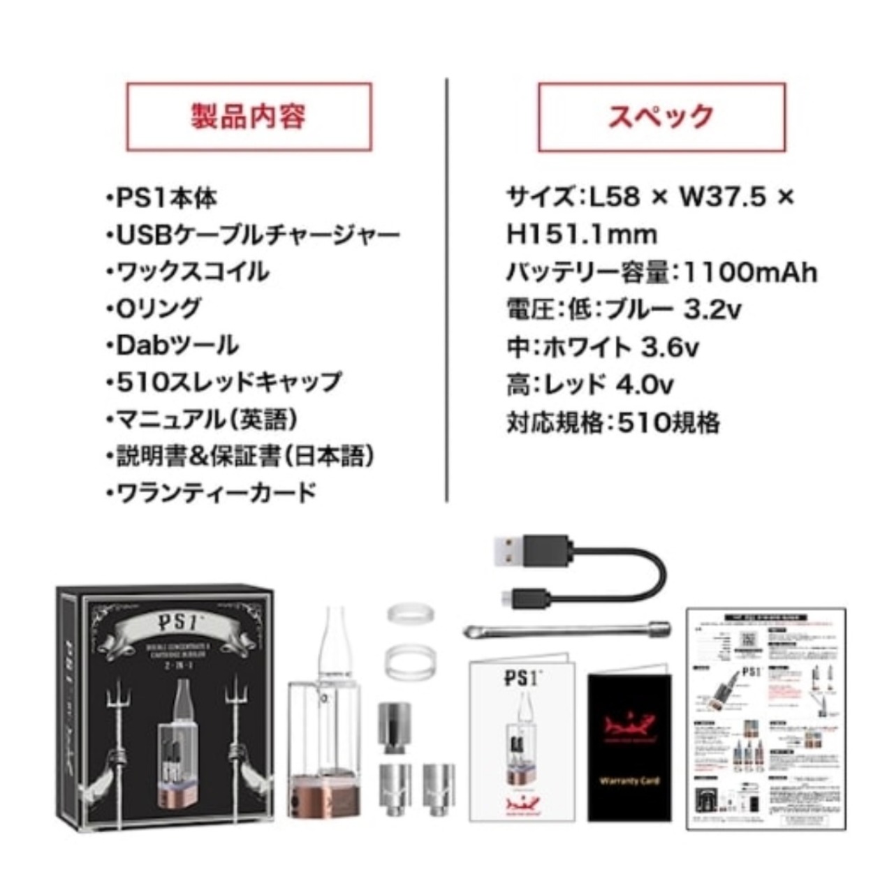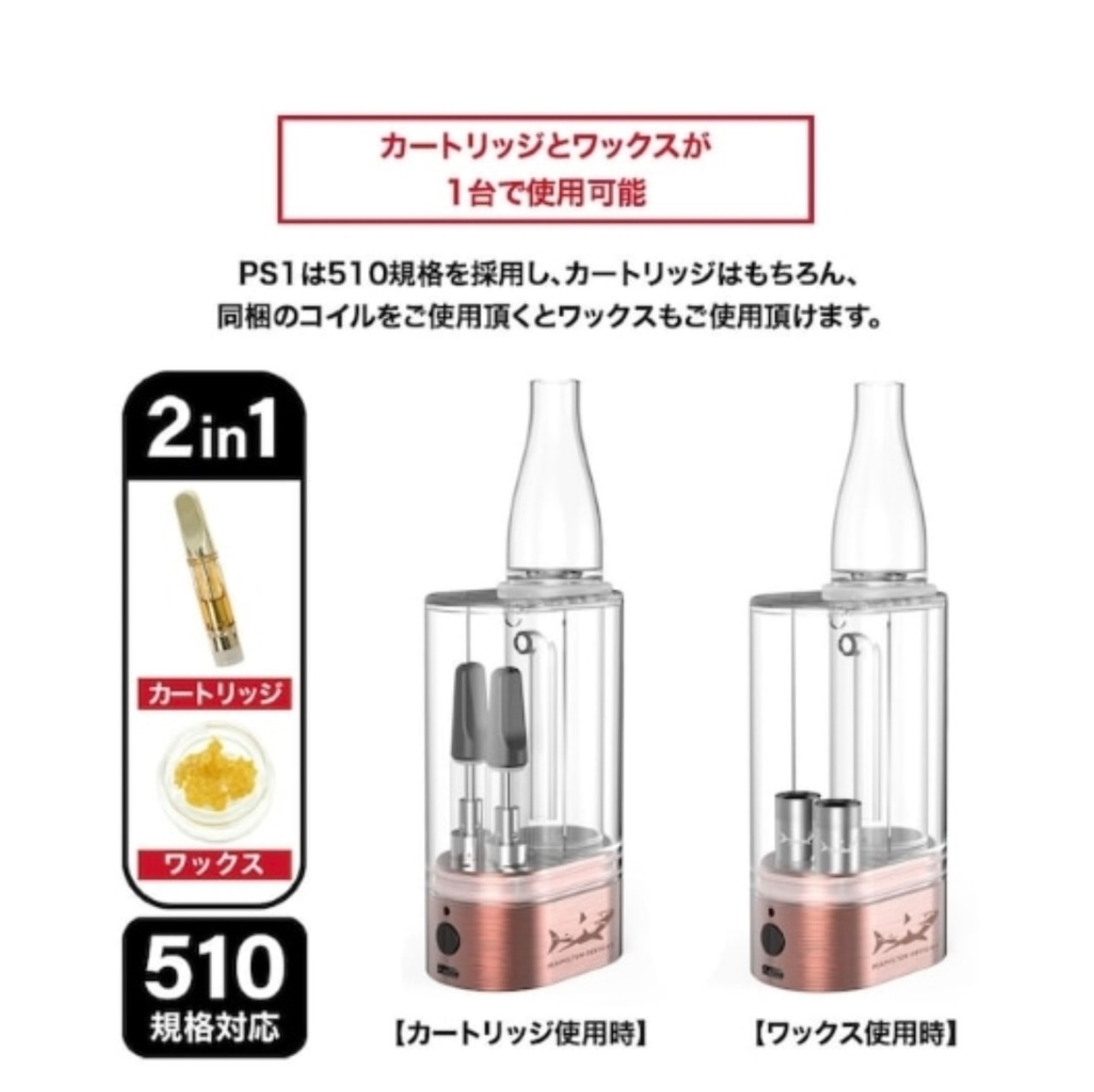 さらにPS1は一度に2つのカートリッジやワックスコイルを接続可能。