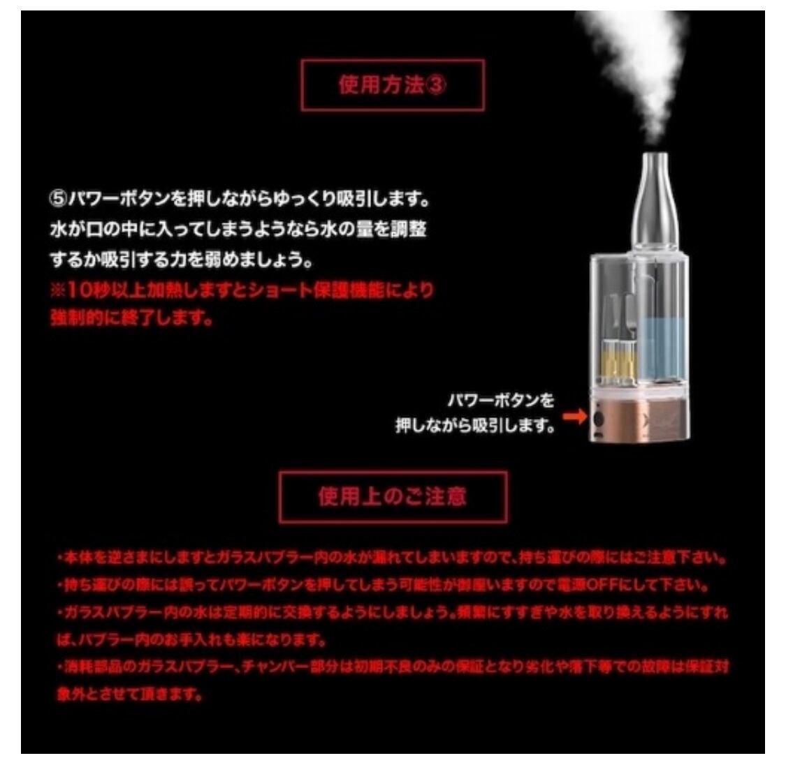 ・水パイプの原理を利用し、まろやかな吸い心地