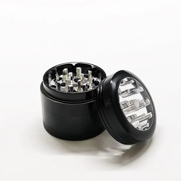 上蓋のアクリル窓から、中が見えて砕き具合を確認できるアルミ4パーツグラインダー。