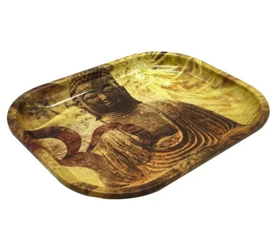 リーフとブッダがプリントされたメタルローリングトレイです。