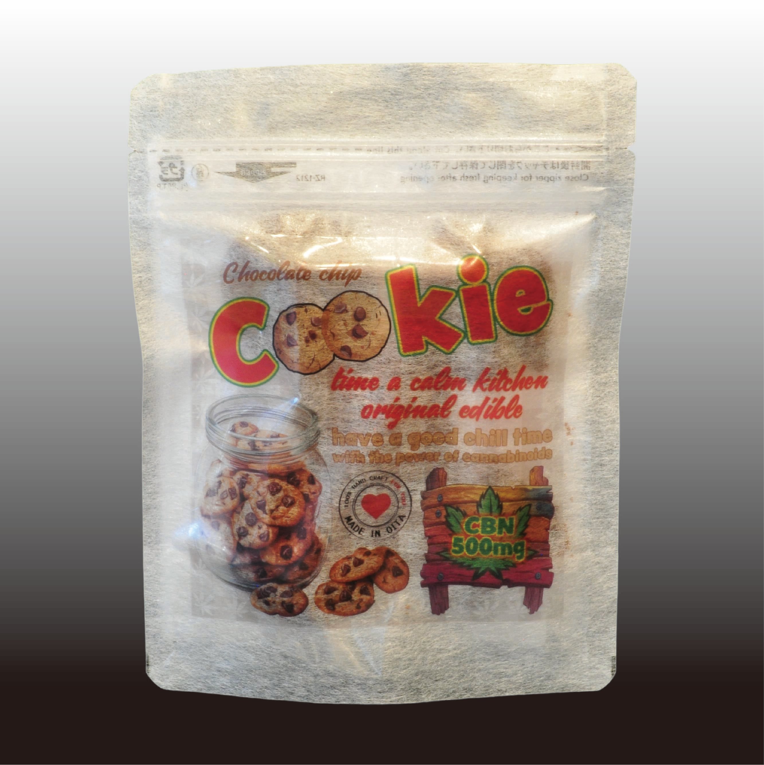 小さめサイズのチョコチップクッキーが5枚入ったパックで1枚当たり100mgのCBNを含有しております。